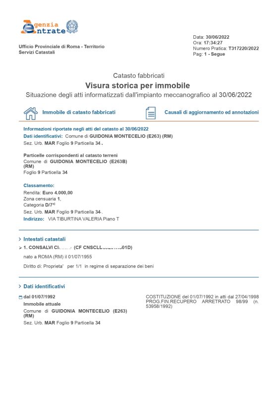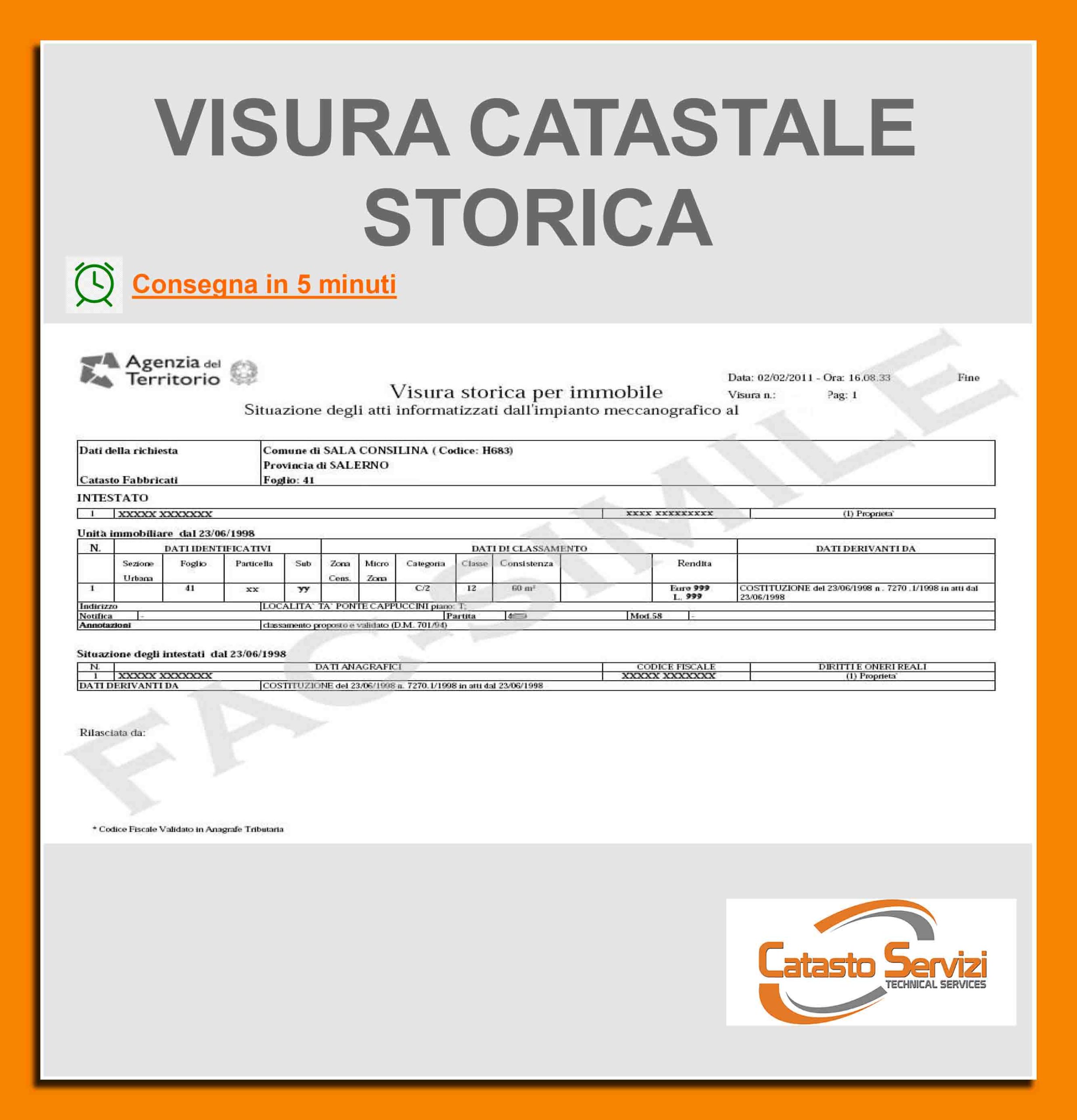 NB. Durante la ricerca sul soggetto può capitare che, per imprecisione nella registrazione da parte del Catasto, un nominativo venga trascritto con diverse denominazioni, costringendo all’apertura di più Visure pur facenti capo allo stesso codice fiscale. In questo caso il nostro Staff ti chiederà un costo di Euro 5,00 (Iva Inclusa) a nominativo.